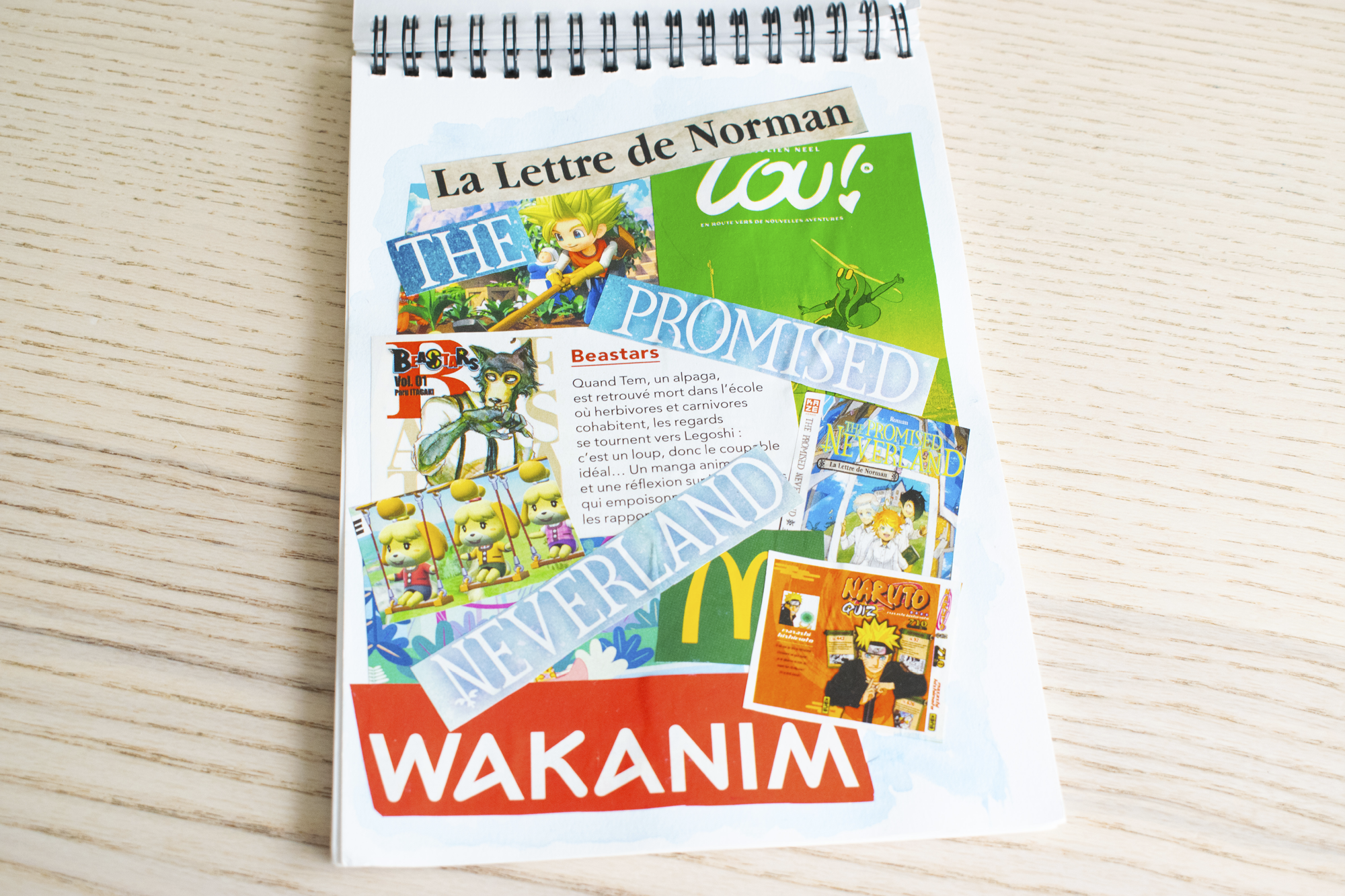En première année de DUT MMI, nous devions réaliser un carnet de croquis à qui j’ai donné le nom Pile ou Face. Ce choix reflétait bien mon état d’esprit face à la création : parfois satisfaite de mes idées, parfois beaucoup moins. À l’origine, le carnet devait s’appuyer sur des visites d’expositions culturelles, mais le confinement a changé la donne. Privée de sorties, j’ai puisé mon inspiration dans mon quotidien : mes parties de jeux vidéo, mes lectures de mangas, des images découpées dans des magazines ou encore des expérimentations en peinture et collage.